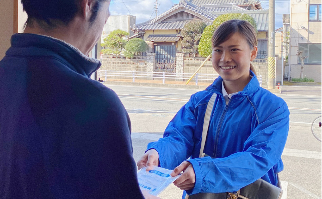 入社当初は分からないことも多く不安もありましたが、先輩スタッフが丁寧に教えてくれたので安心して仕事を覚えることができました。配達は地域の方との距離が近く、感謝の言葉をいただけることも多くやりがいを感じています。現在は後輩のサポートにも携わりながら、チームで協力して業務に取り組んでいます。